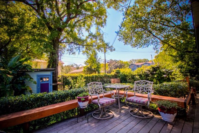 The back porch might be the highlight of the home. It's isolated, but airy. Serene, yet lively. I can't think of a better place to sit as the summer sun sets.